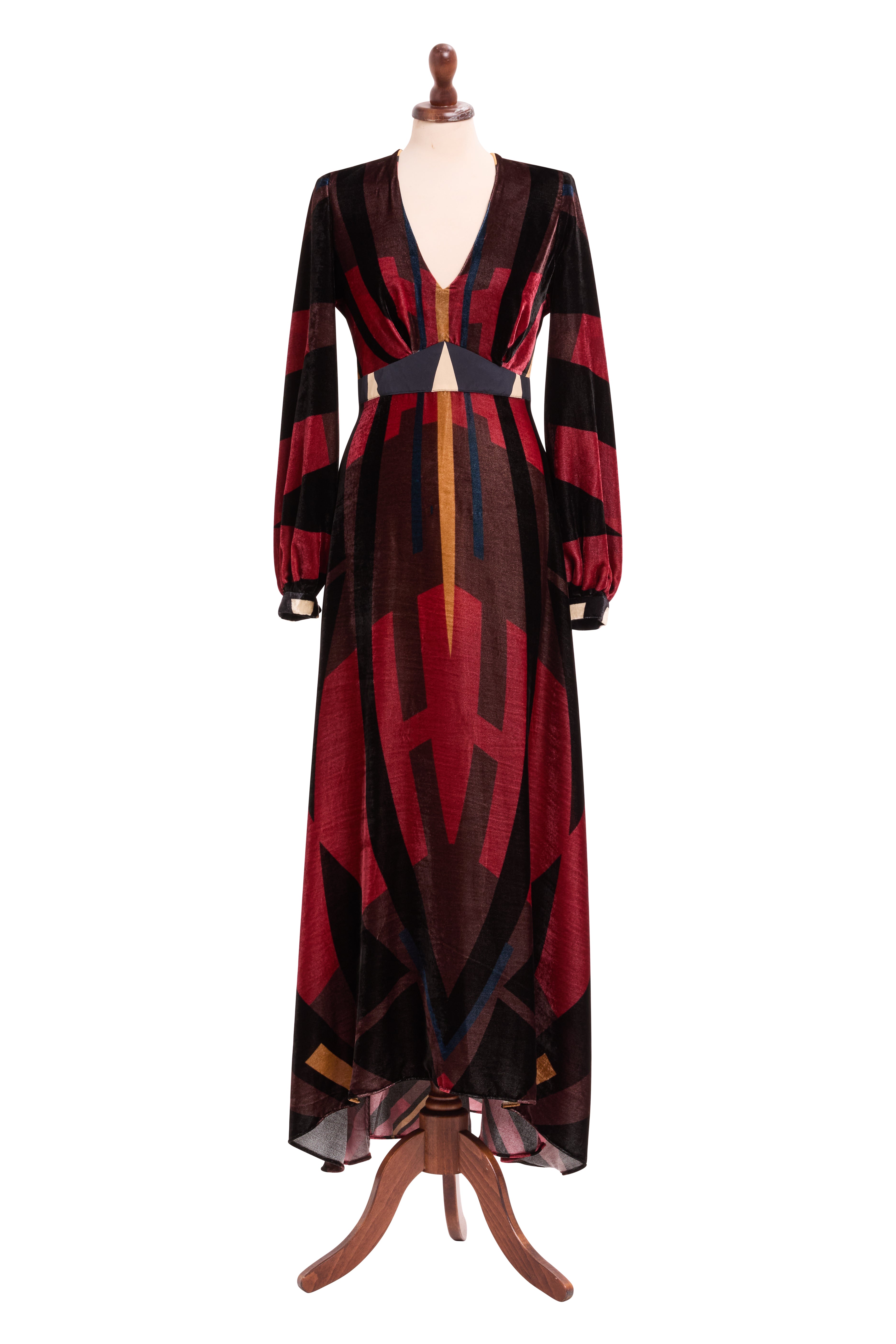 The Astral Dress is crafted from luxurious silk velvet — a blend of 80% viscose and 20% silk that feels as soft as it looks. Designed for winter soirées and special occasions, this long dress gently hugs the silhouette while keeping you comfortably warm. A subtle slit at the back adds ease of movement and understated allure.