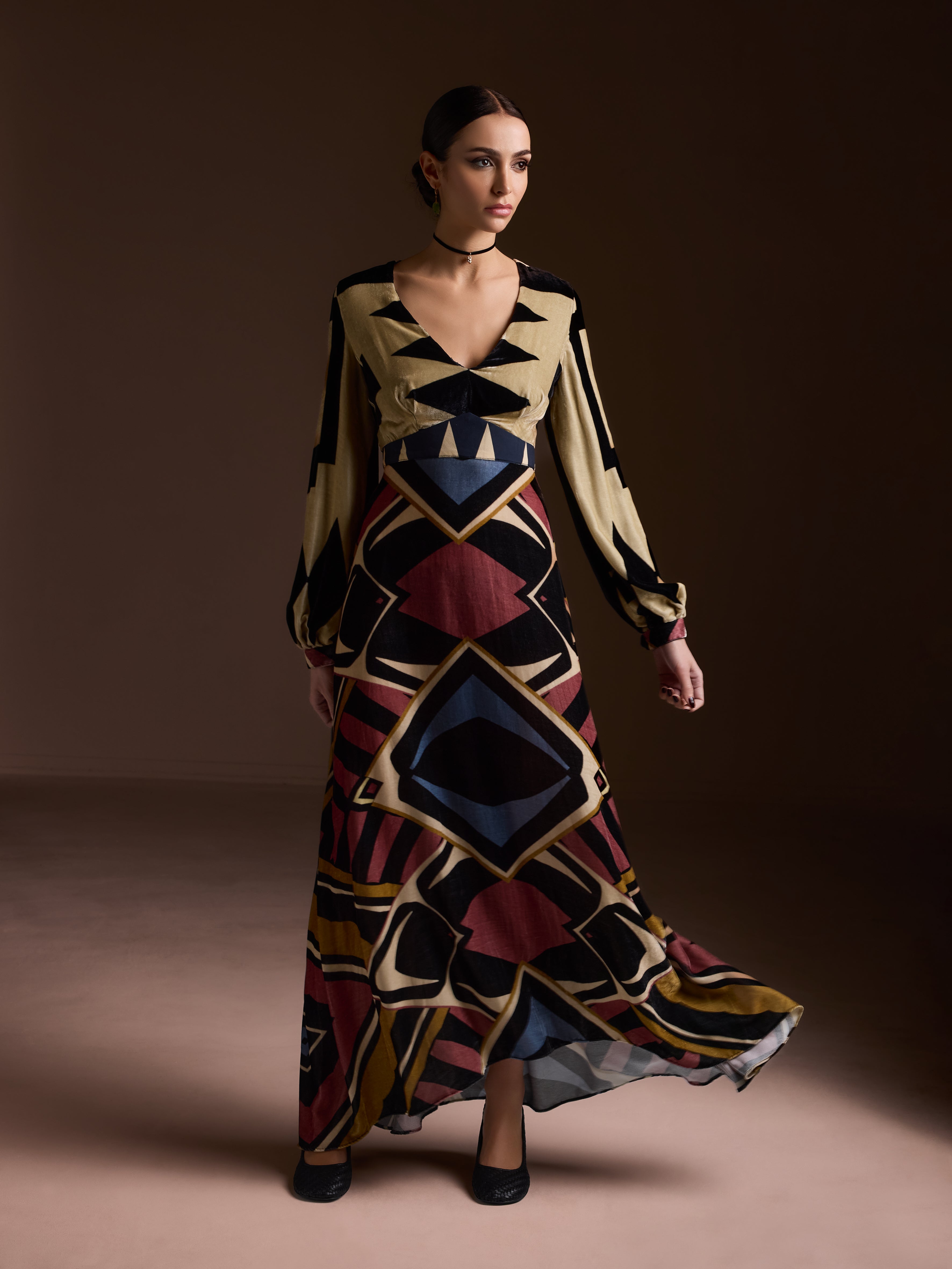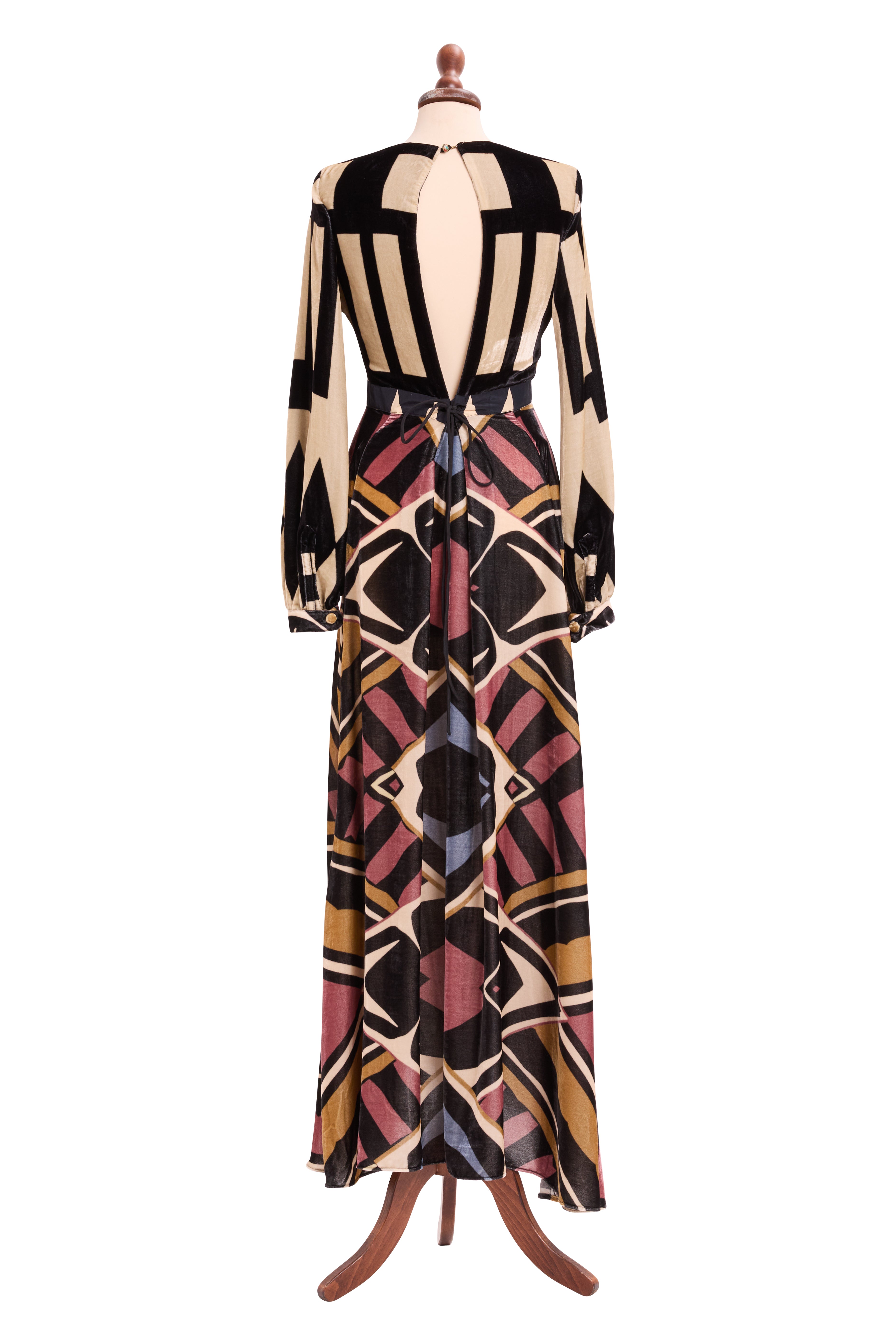 The Astral Dress is crafted from luxurious silk velvet — a blend of 80% viscose and 20% silk that feels as soft as it looks. Designed for winter soirées and special occasions, this long dress gently hugs the silhouette while keeping you comfortably warm. A subtle slit at the back adds ease of movement and understated allure.